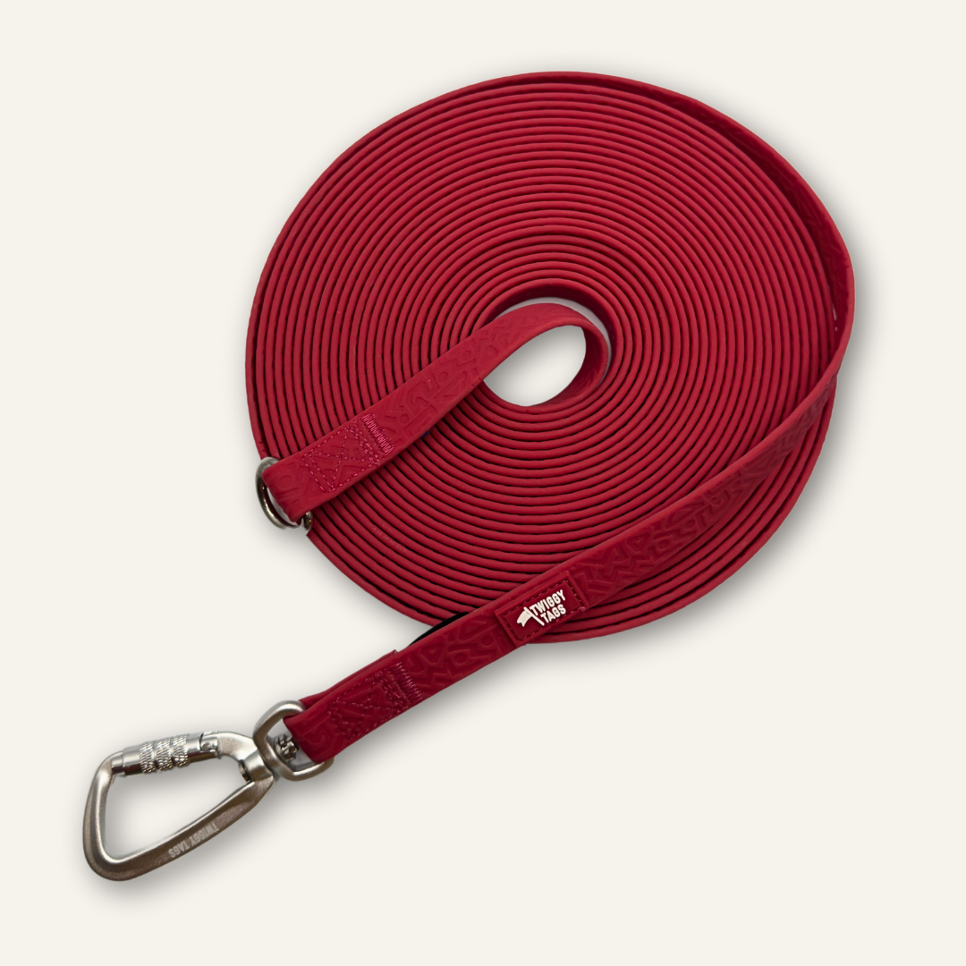 Waterproof Dog Lead with Locking Carabiner Clip. Designed for ultimate convenience and performance, this lead is perfect for outdoor adventures with your dog. Wipe-clean and stink-proof with a secure locking mechanism, this lead is built for those bog-dogs who just love mud!